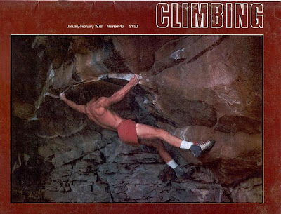 But things were changing fast in the climbing world. Tony remembers a moment of inspiration when he saw a magazine cover showing John Long climbing one of John Gill’s testpieces at Pueblo, Colorado. It was January 1978, long before the internet: Climbing magazine was one of the only places to read about climbing; it cost a buck-fifty, and on the cover was this superhero in running shorts pumped up like a muscle-mag stud burling across this mythical masterpiece of bouldering esoterica, The Ripper Traverse.